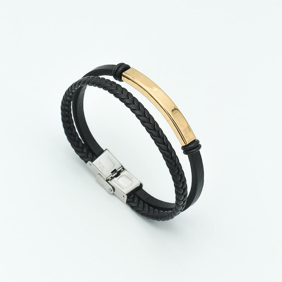 Ideal for anyone who appreciates understated luxury, this black leather bracelet with gold accents is the perfect way to add a touch of refinement to your collection.
